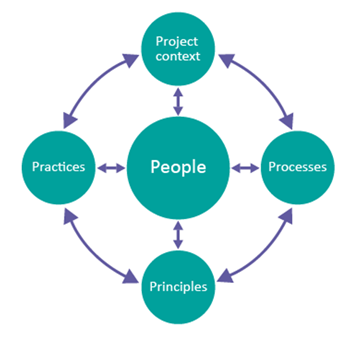 The project context: The principles, practices, and processes are applied by the people involved to ensure that the method is fit for the project context.
